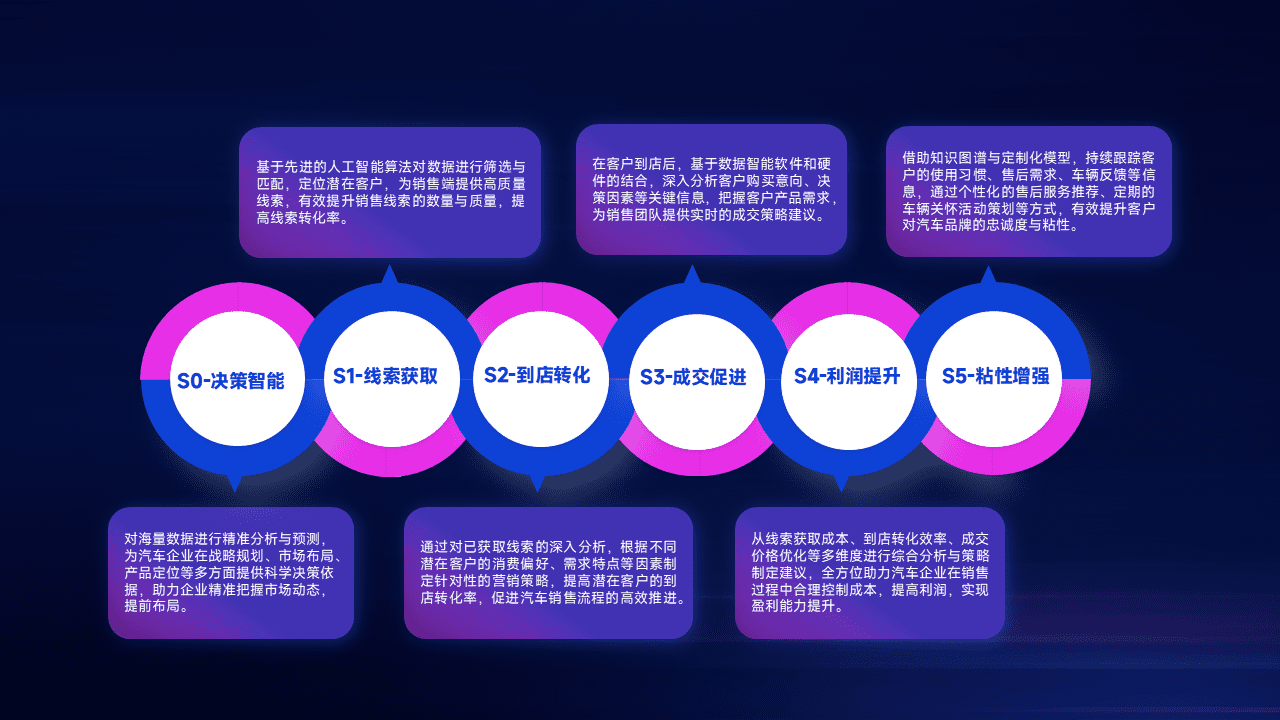 通过拓宽潜在客户来源、、、、优化线索分配并提高到店转化率,,以增强销售效率。。。。同时,,,,利用线索数据不断优化分析模型,,,,有效提升转化率,,,扩大营销影响力。。。。